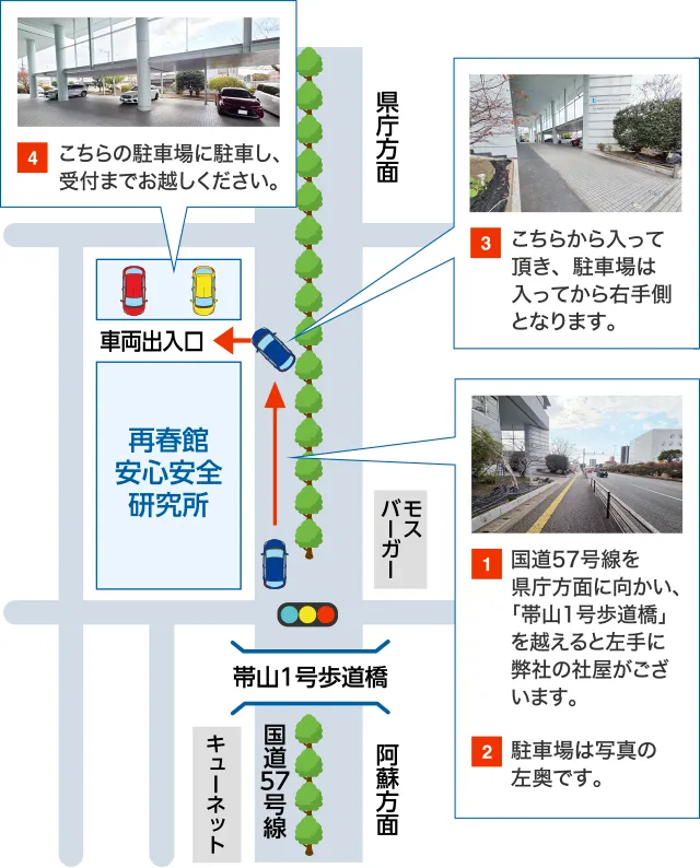●熊本インター ⇒ 「帯山中学校前」(下車より徒歩約3分)